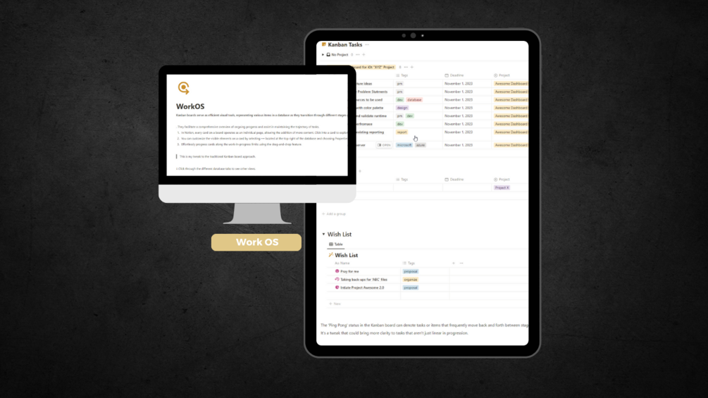 Transform your projects into actionable goals and tasks using WorkOS. Empower your work-flow and masterfully conquer your day.